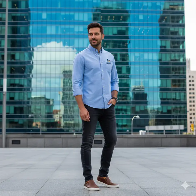 قميص أزرق سماوي يمنحك مظهرًا راقيًا يناسب كل لحظة عمل أو نزهة.